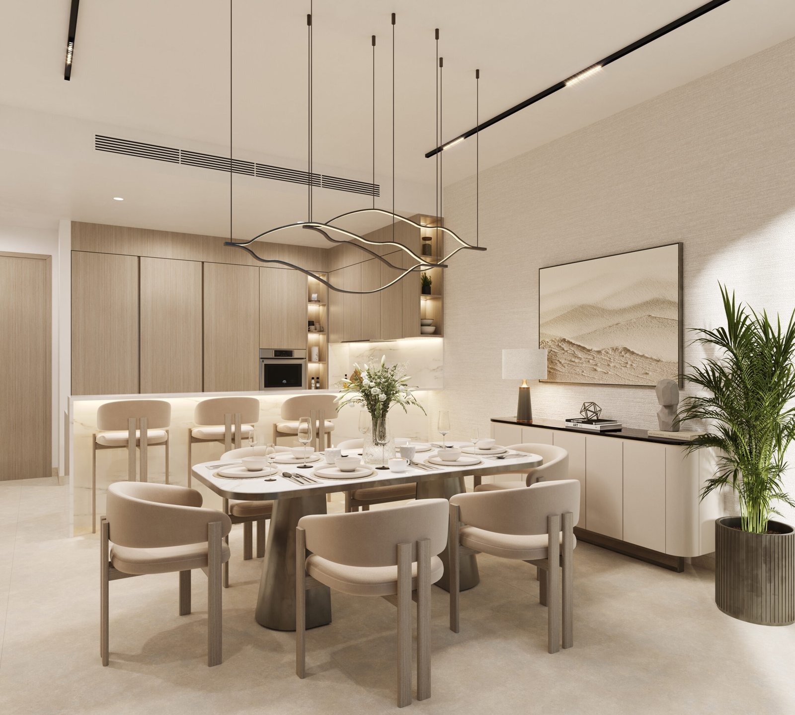 Featuring panoramic views of the sea horizon, Bluewater’s Island, and the Dubai Marina skyline, Sol Levante is architecturally designed to follow the sun. Its elegant façade seamlessly combines glass and solid elements, allowing natural light to flood every corner of the home. Spacious terraces and floor-to-ceiling windows enhance the indoor-outdoor lifestyle, creating a bright and airy living environment.